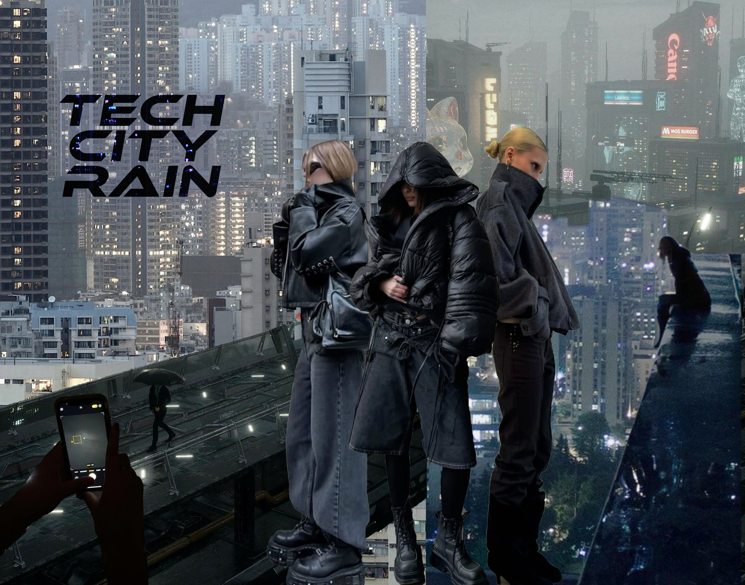 Tech City Rain - Mood Board & Fabric Board, 2025